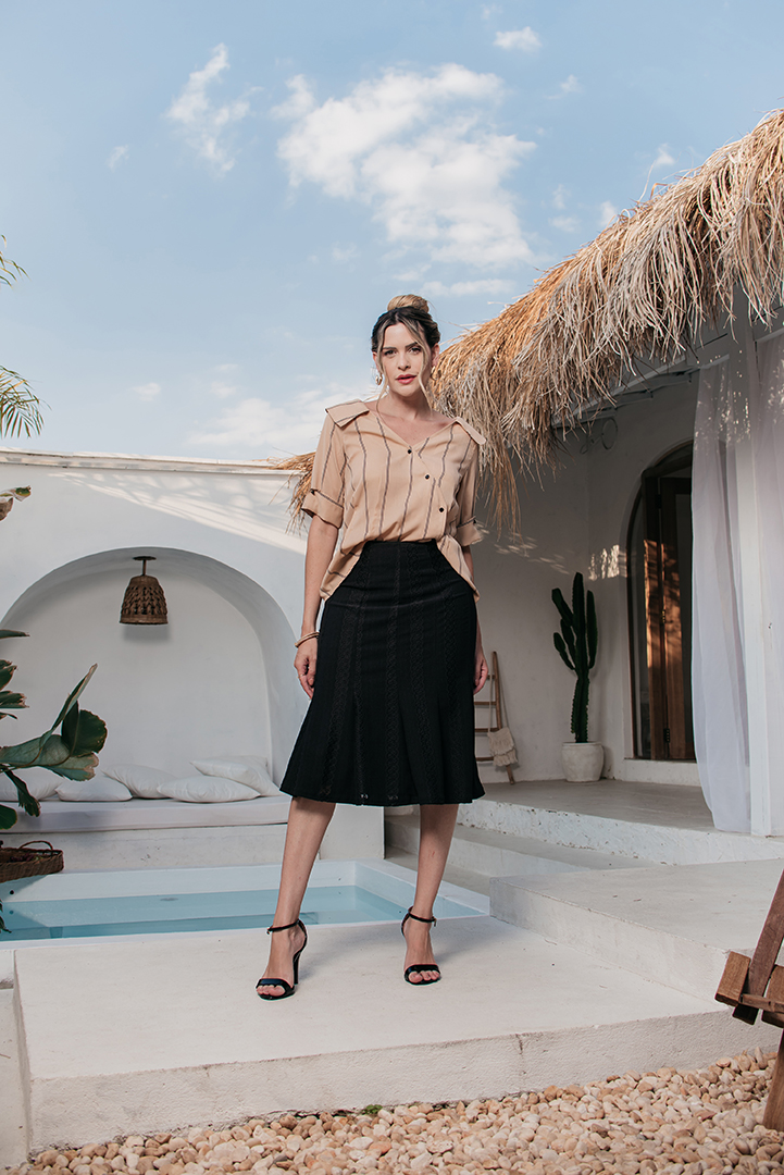 BLUSA LAIS GOLA E TRANSPASSE EM CHIFFON LISTRADO