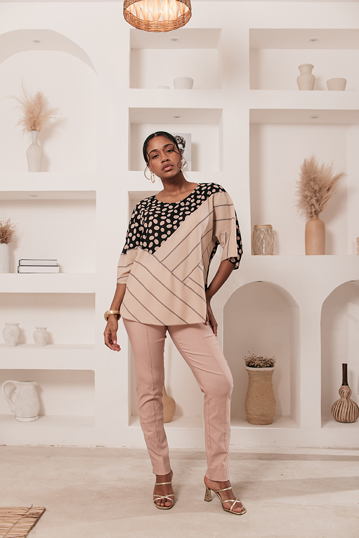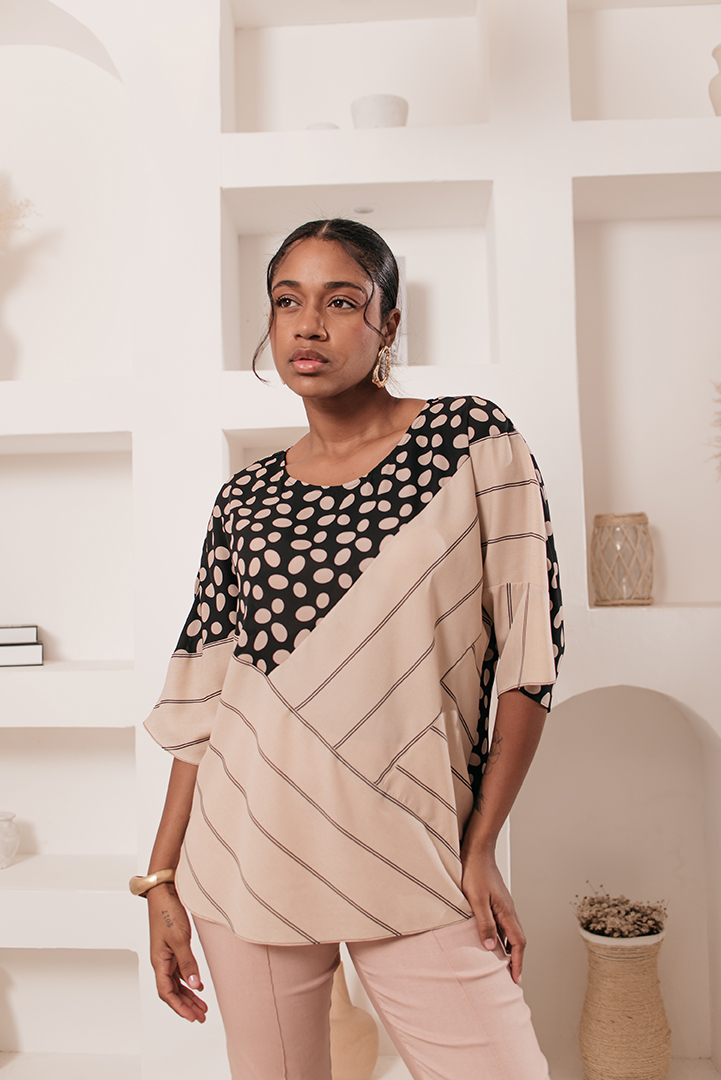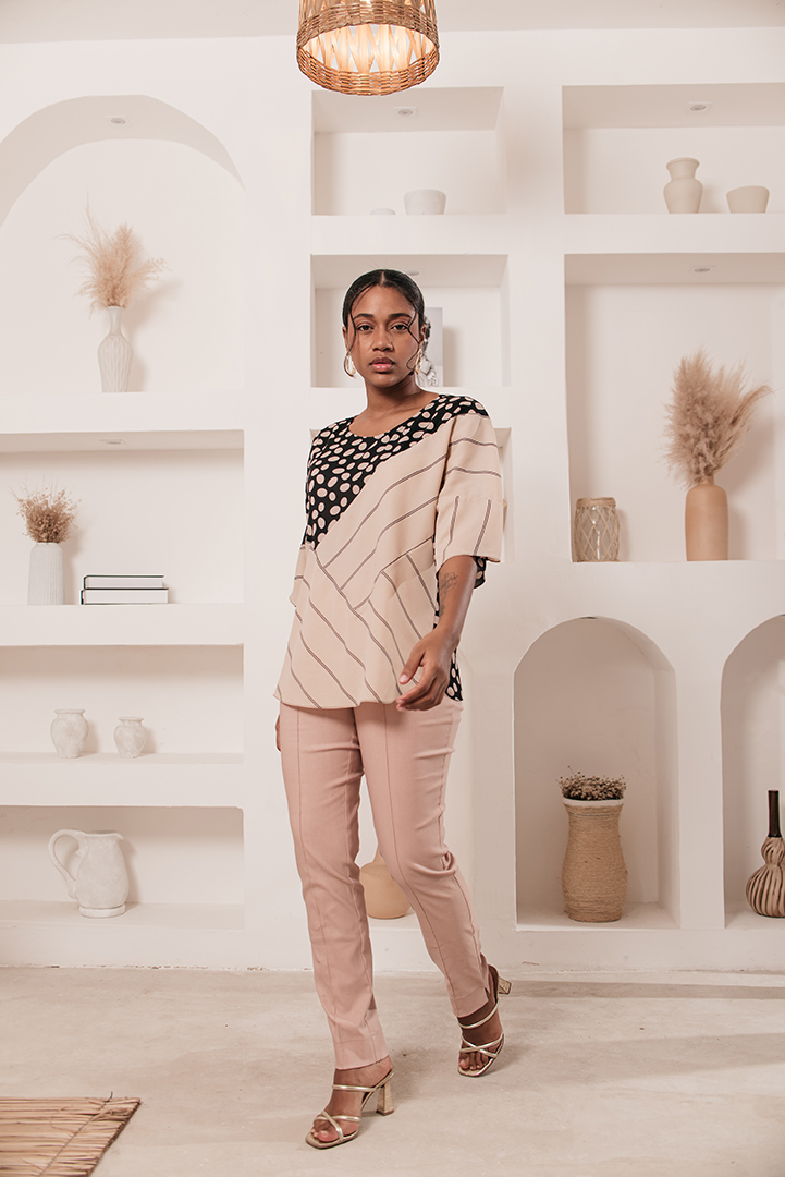BLUSA JOANA COMPOSE LISTRA E POA EM CHIFFON