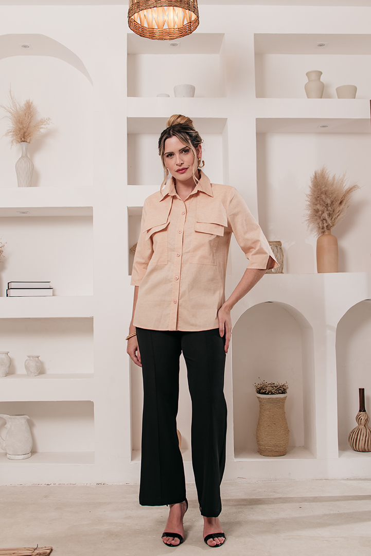 CAMISA LIA 02 BOLSOS EM LINHO BEGE