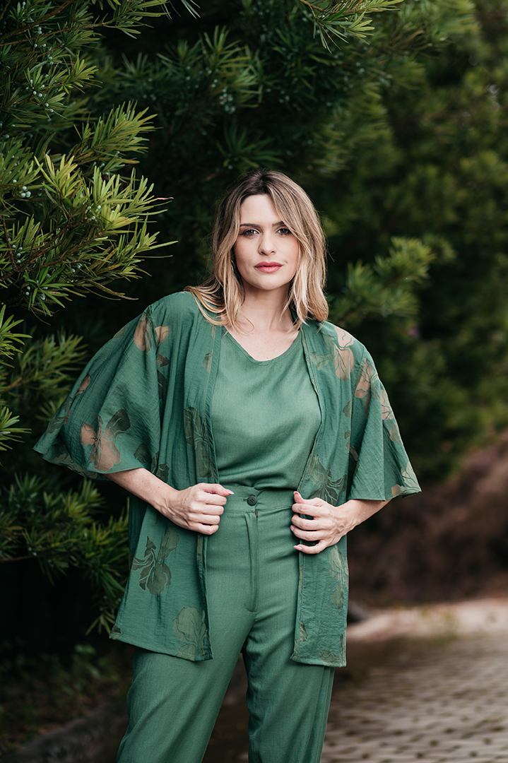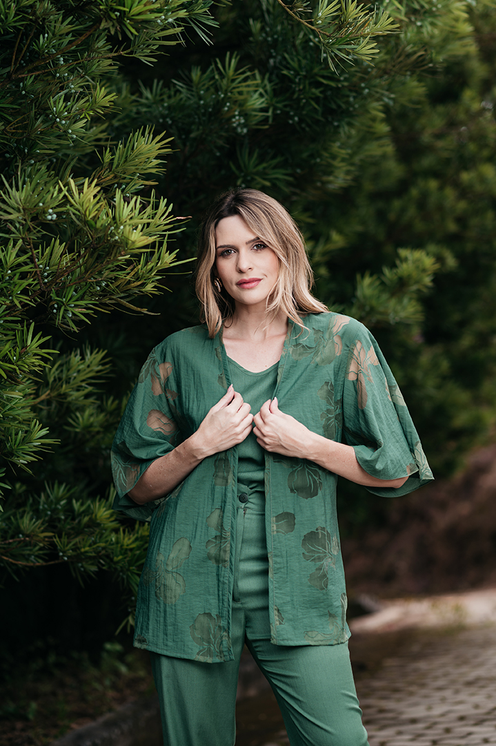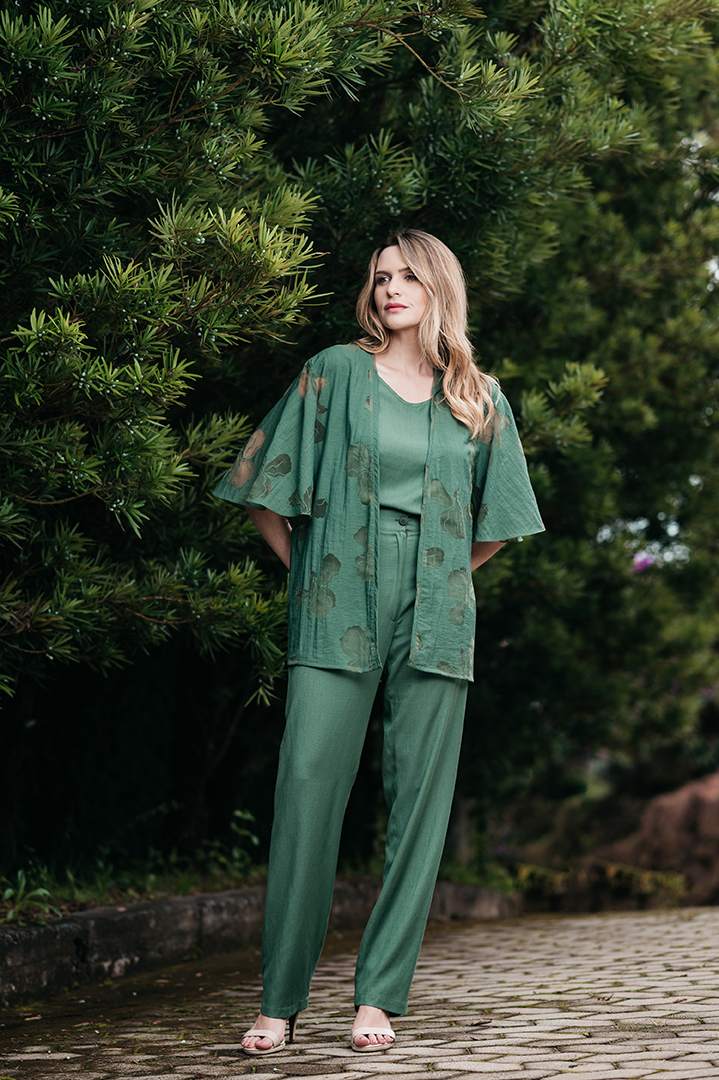 CONJUNTO CINTIA 3 PEÇAS REGATA, CALÇA E CASACO EM VISCOLINHO E CREPE DEVORE