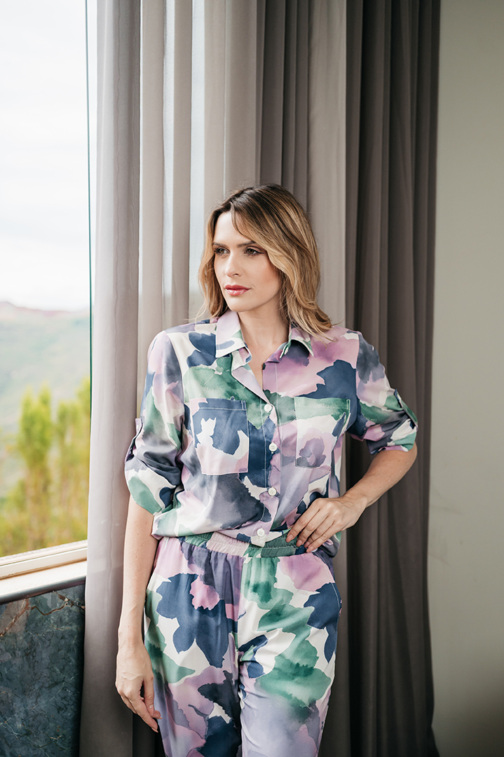 CONJUNTO CLORINDA CAMISA E CALÇA EM SEDA BEGONIA ESTAMPA EXCLUSIVA