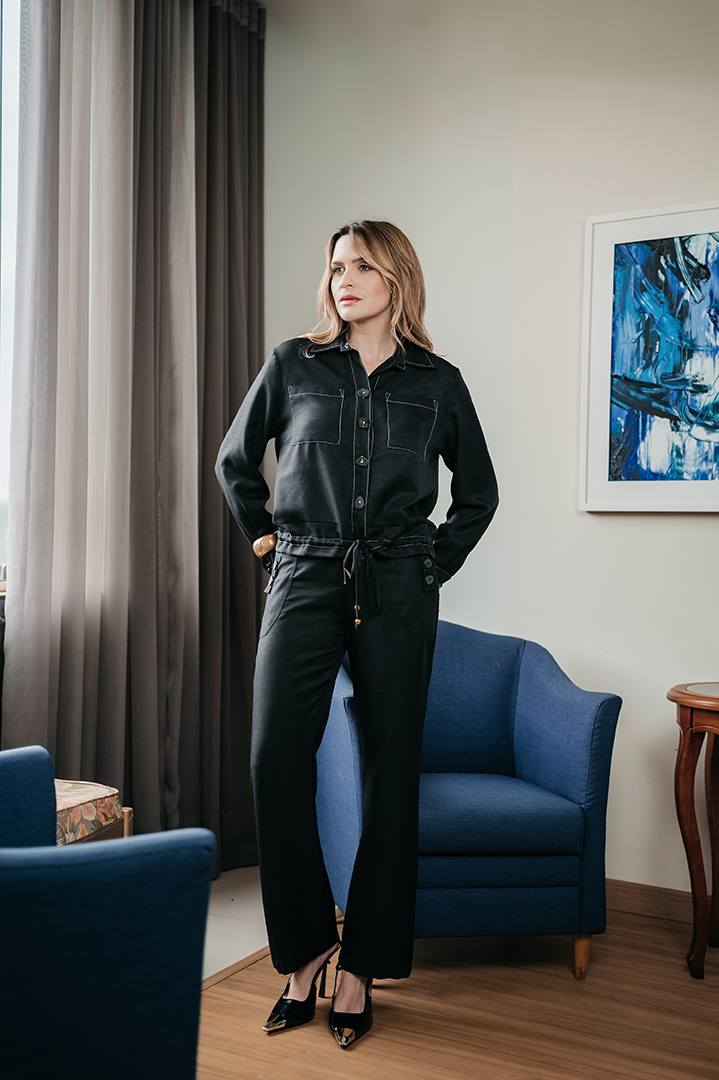 CONJUNTO SOUL JAQUETA E CALÇA PESPONTOS EM CREPE TWILL