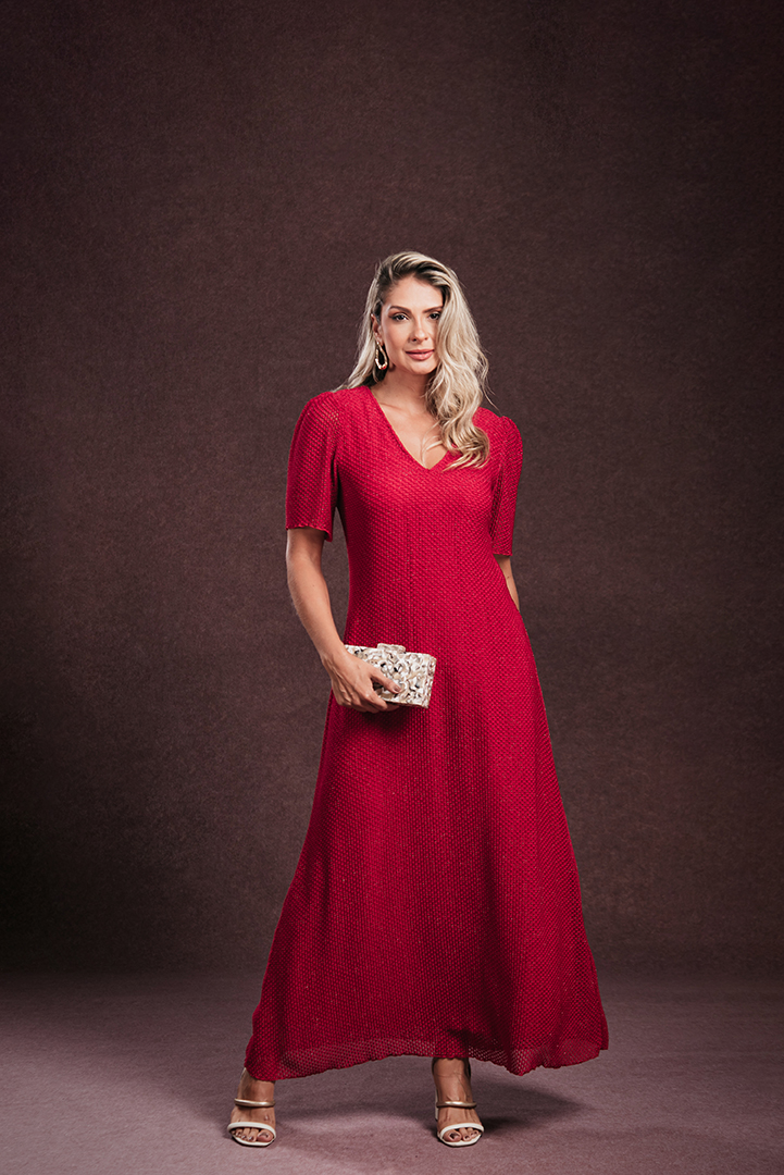 VESTIDO LUIZA EVASE MIDI TELA VERMELHO